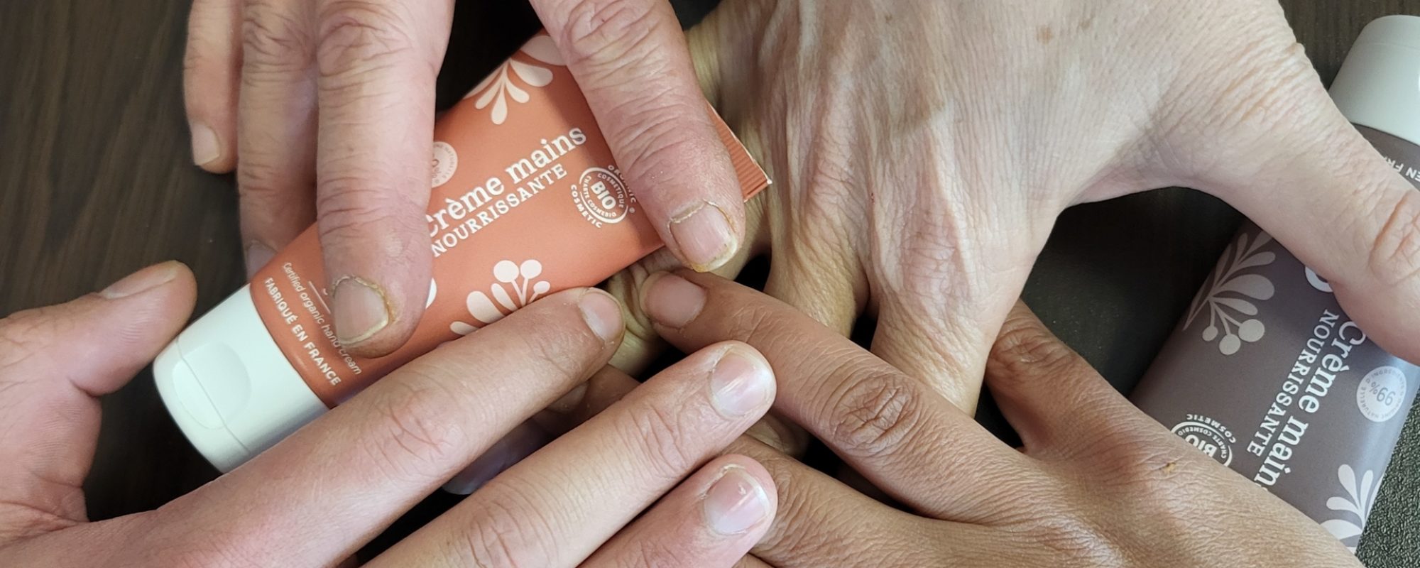 En effet, suite à de nombreuses frictions avec la solution hydroalcoolique et de nombreux lavages de mains, celles-ci sont très desséchées et abîmées pendant la période hivernale.